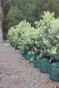 | Though more commonly grown in the southern states this is still a fine plant for hedging in Queensland. During winter the leaves turn fire engine red and the foliage is a counterpoint of deep green. It does need regular pruning to improve density but more than makes up for this with disease resistance and overall hardiness. The hedge in this photo is less than one year old and was planted from 300mm pots. | |